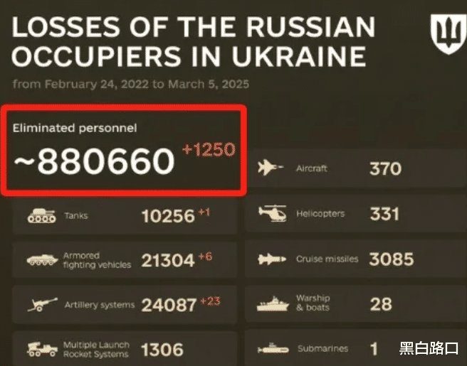截至3月5日,俄军损失突破88万,达到880660人,代价惊人。俄罗斯虽然拥有庞大人力,但资源不是无限的,如今俄罗斯军事潜力、装备即将耗尽,经济勉强维持,如果乌克兰继续战斗,那么俄罗斯未必能得到想要的结果。