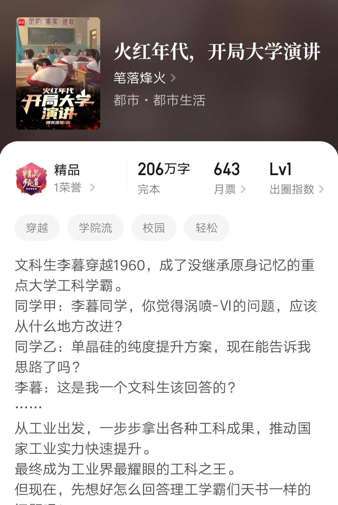 时代与科幻:现代职场与穿越的双重奏对于喜欢探索时代交错的读者,《火红年代,开局大学演讲》则描绘了一个从六十年代到现代的奇妙穿越旅程。
