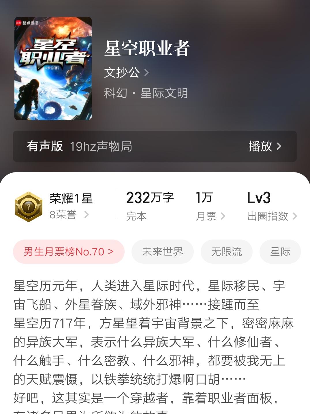 还有《星空职业者》的奇幻冒险,主角展开了一场跨越诸天的修行,那种创世的感觉和道路上的艰难选择扣人心弦。