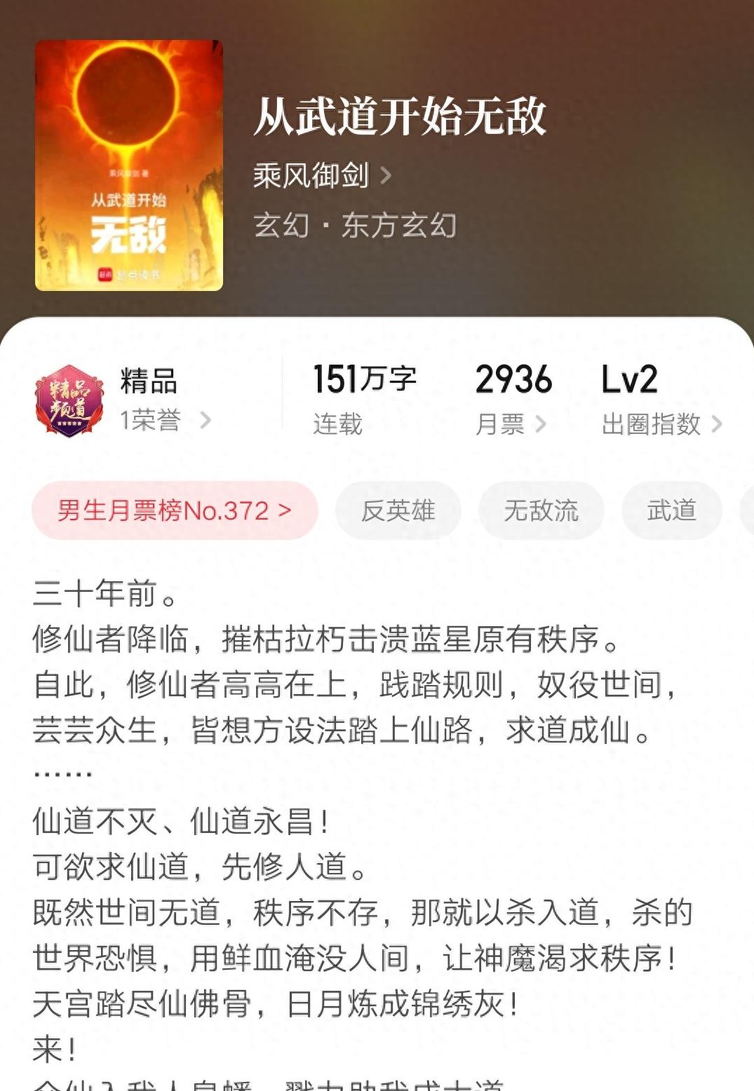 《从武道开始无敌》是乘风御剑的又一力作,虽然篇幅不长,但它让读者体验了玄幻世界的刺激。
