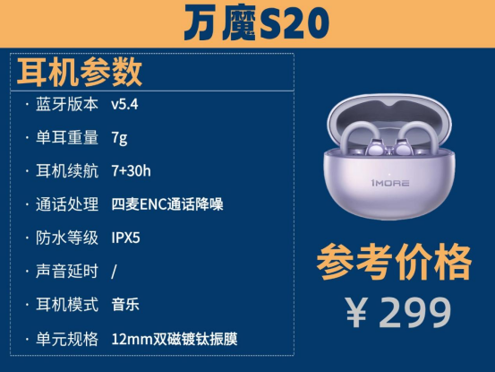 耳机亮点:开放式机仓+弧形桥设计+单耳5.3g+液晶振膜