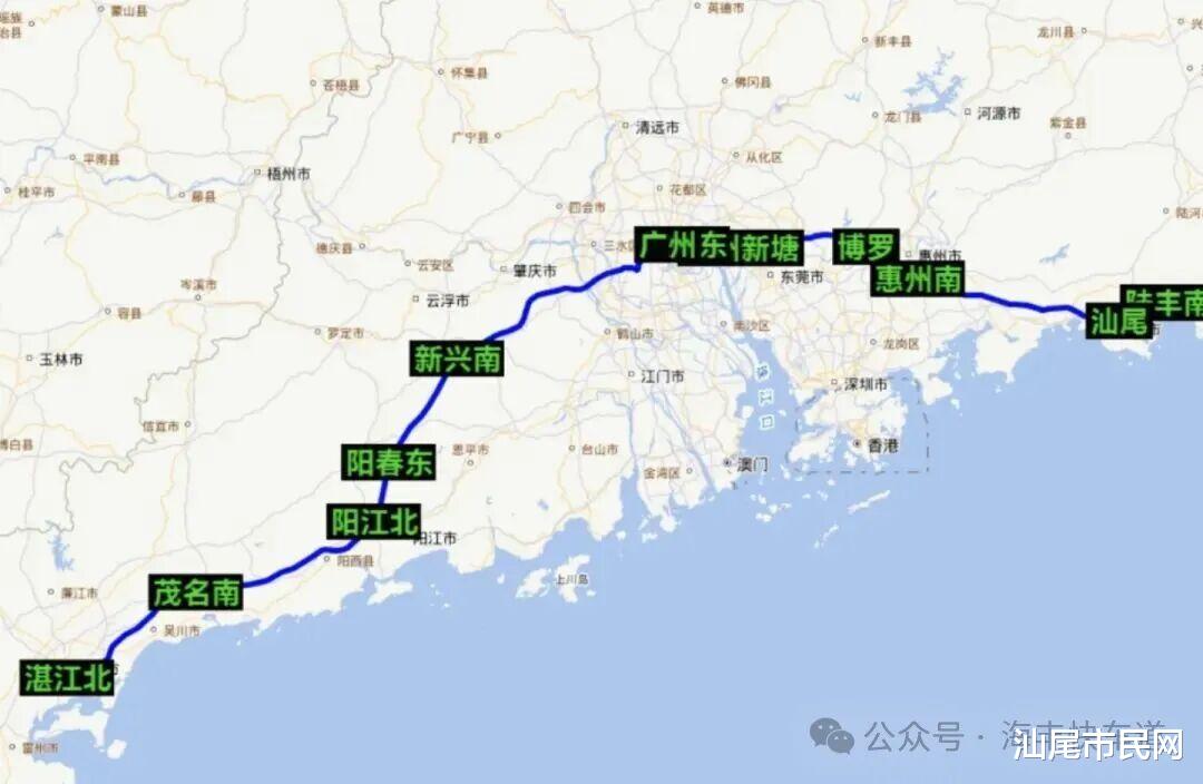 据了解:广州至湛江高铁开通后,将连接广州至汕尾铁路,湛江至汕尾仅需两个多小时!