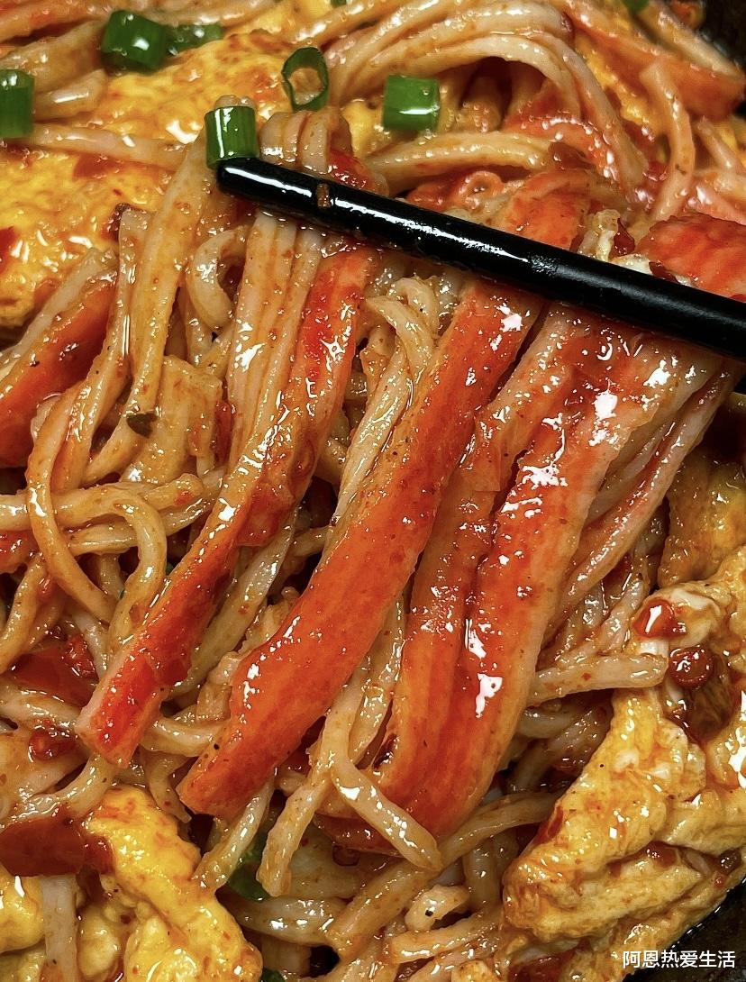 后来我才知道,这看似随意的组合,其实暗藏玄机:蟹柳自带的鲜甜,恰好能弥补鸡蛋的单调;鸡蛋的嫩滑,又中和了蟹柳的"加工感"。两者相遇,就像相声里的捧哏和逗哏,一个负责鲜,一个负责嫩,配合得天衣无缝。