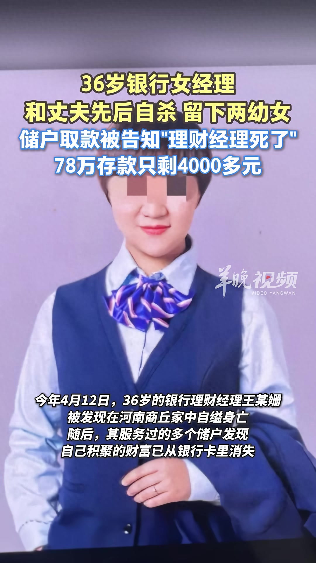 今年4月12日,36岁的银行理财经理王某姗被发现在商丘家中自缢身亡。随后,其服务过的多个储户发现,自己积聚的财富已从银行卡里消失。