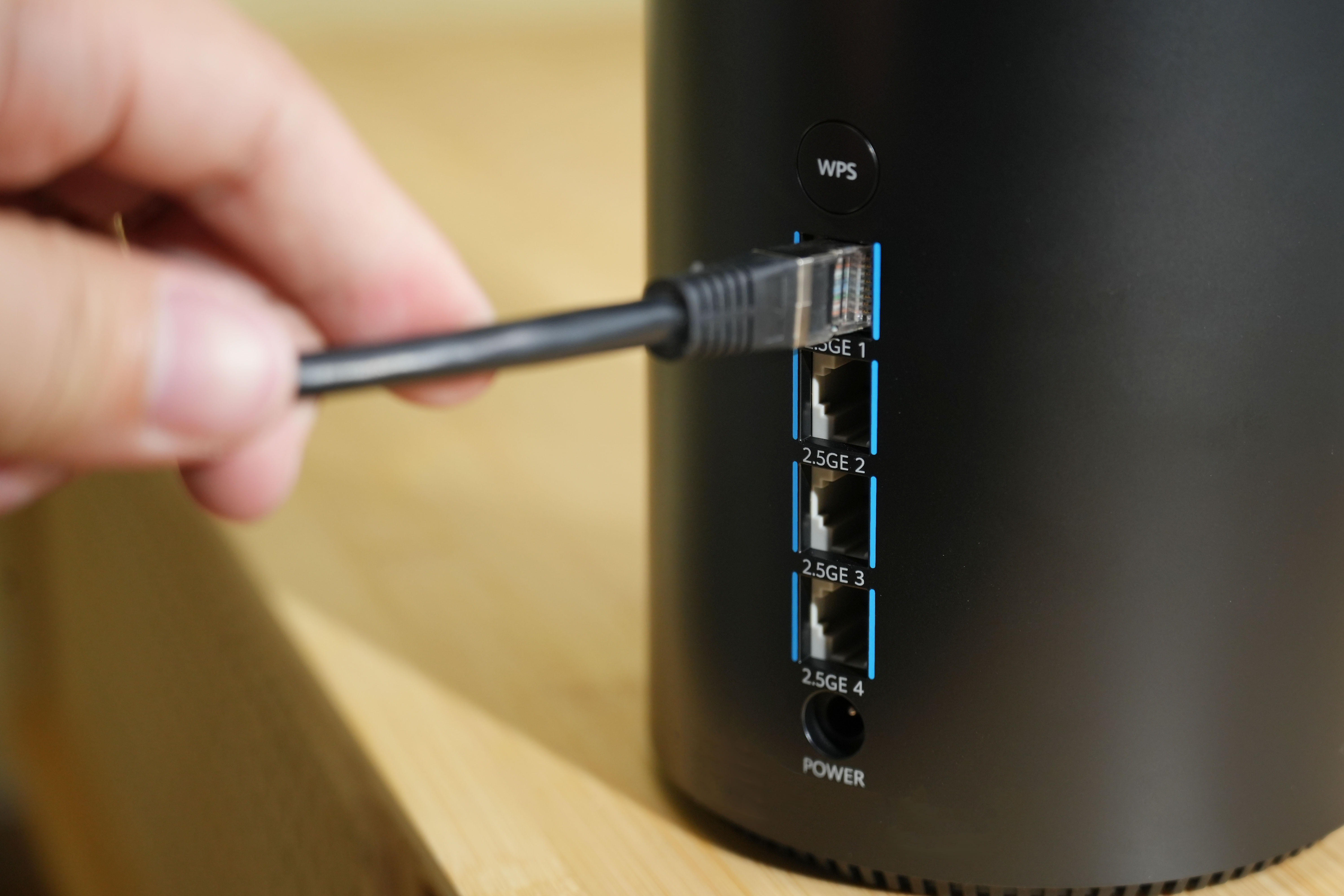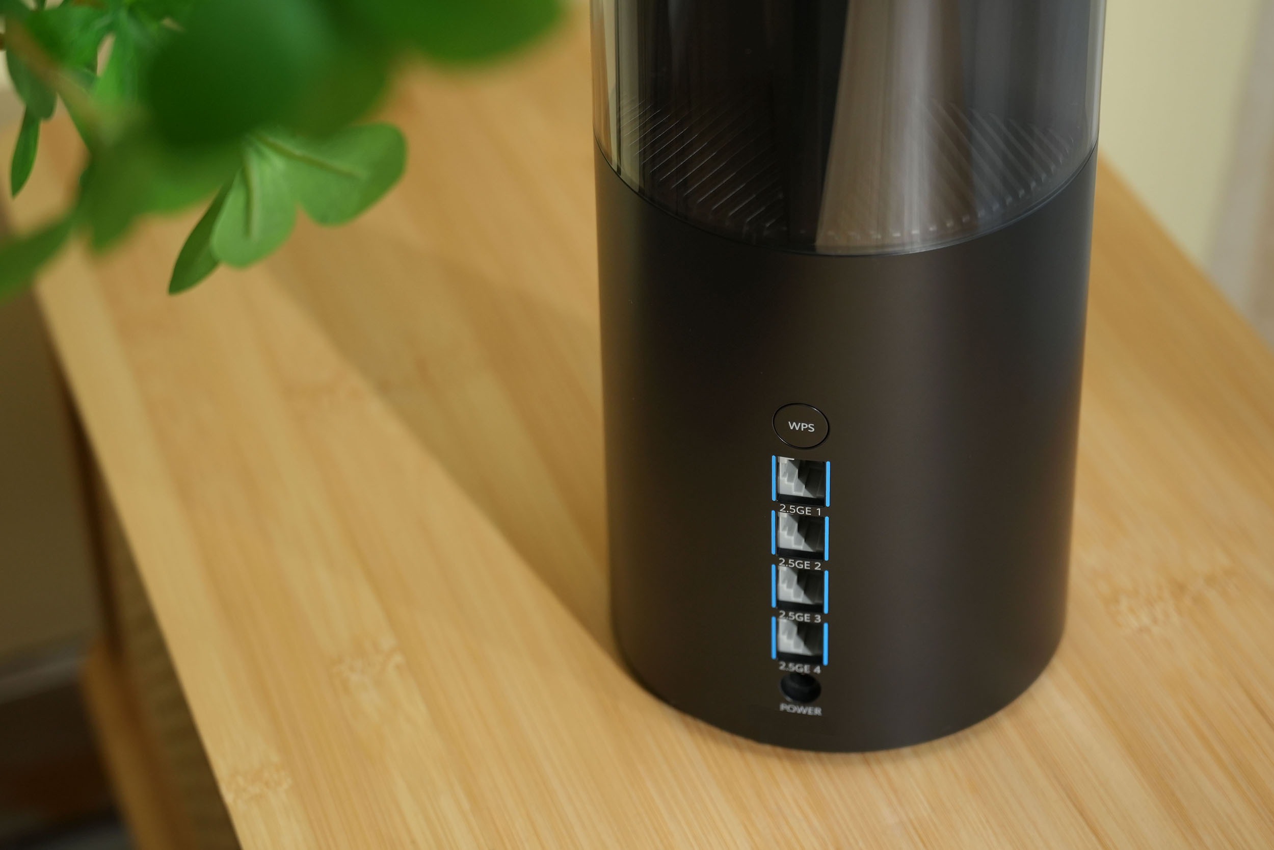 华为路由 X1 Pro的背面按键也非常简洁,一个用于简易链接Wi-Fi的WPS按钮,底下就是竖向的四个2.5G网口,完全能够满足现代家居用网需求,尤其在家庭网络设备增多、带宽需求提升的背景下,其优势更加明显。