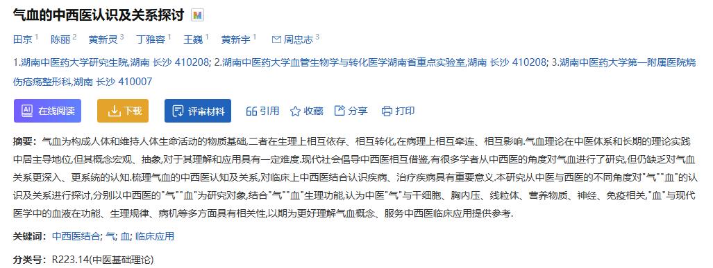 参考资料[1]田京 陈丽 黄新灵 丁雅容 王巍 黄新宇 周忠志.气血的中西医认识及关系探讨. 中国医药导刊, 2024-04-22