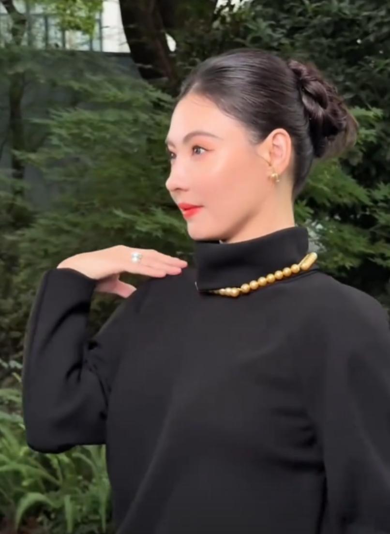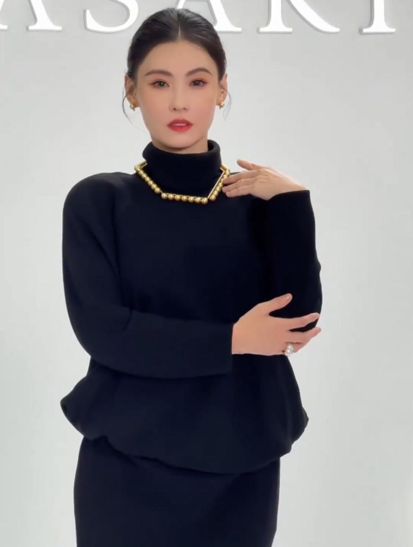当天,张柏芝穿着一身黑色高领针织上衣配黑色修身长裙,整体造型端庄大气,简约中透着贵气。头发整齐地束成低发髻,露出完整的面部轮廓,气场稳重又沉静。