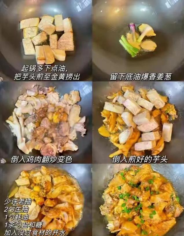 芋头焖鸡肉也是儿子喜欢得不行的一道菜。妈妈把芋头切成小块,和鸡肉一块儿焖。芋头焖得绵绵的、粉粉的,鸡肉的油都渗到芋头里,吃起来芋头比鸡肉还香。吃的时候,芋头的软乎乎和鸡肉的实实在在一起咽下去,口感好得让人吃了还想吃。