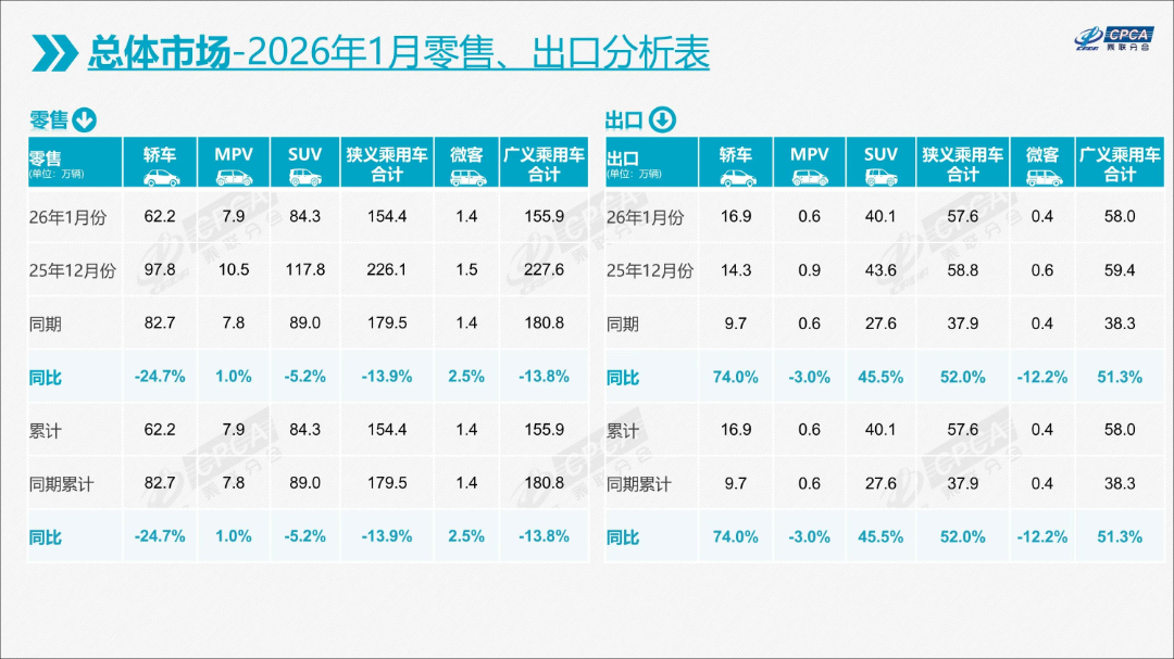 首先是市场大环境的不景气。 中汽协数据显示,今年1月乘用车产销量同比下跌4.1%和6.8%;乘联会数据更显示,1月国内狭义乘用车销量154.4万辆,同比下跌13.9%。与此同时,中国汽车流通协会的数据显示,1月汽车消费指数仅为31.1,处于历史低位。春节前的传统购车旺季,并未给车市带来预期的回暖。