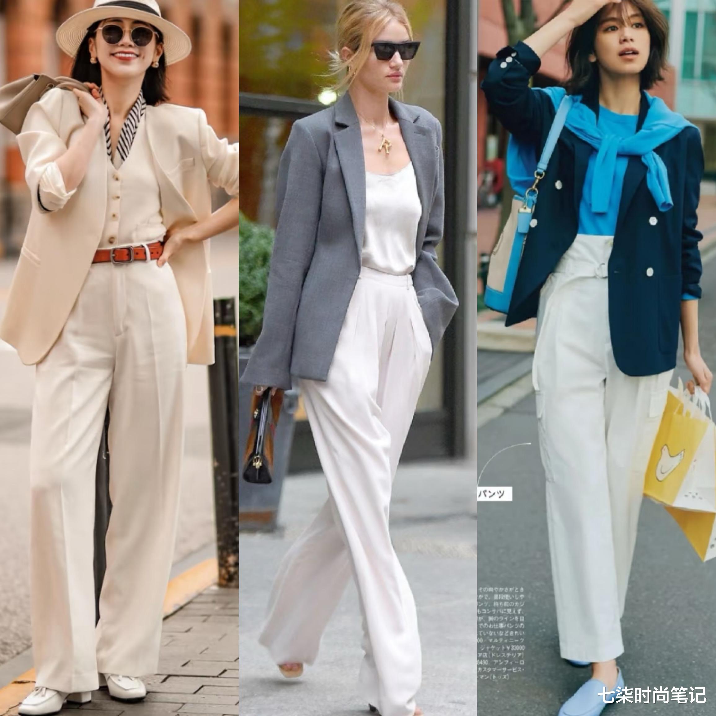 春夏的职场上,一条清爽简洁的白色直筒裤搭配剪裁得体的西装,既保持了职场的正式感,又多了几分温柔女人味,真是又飒又美。
