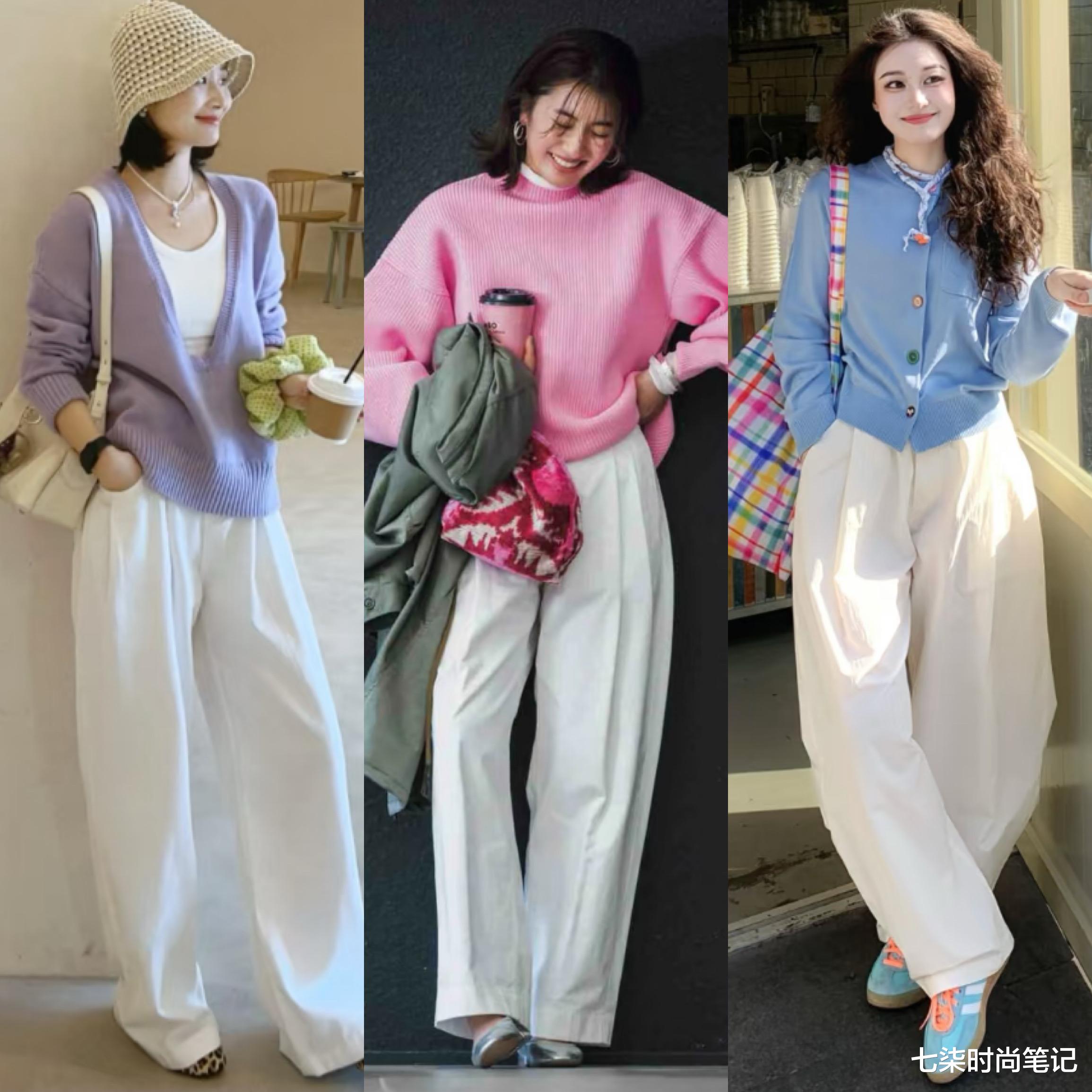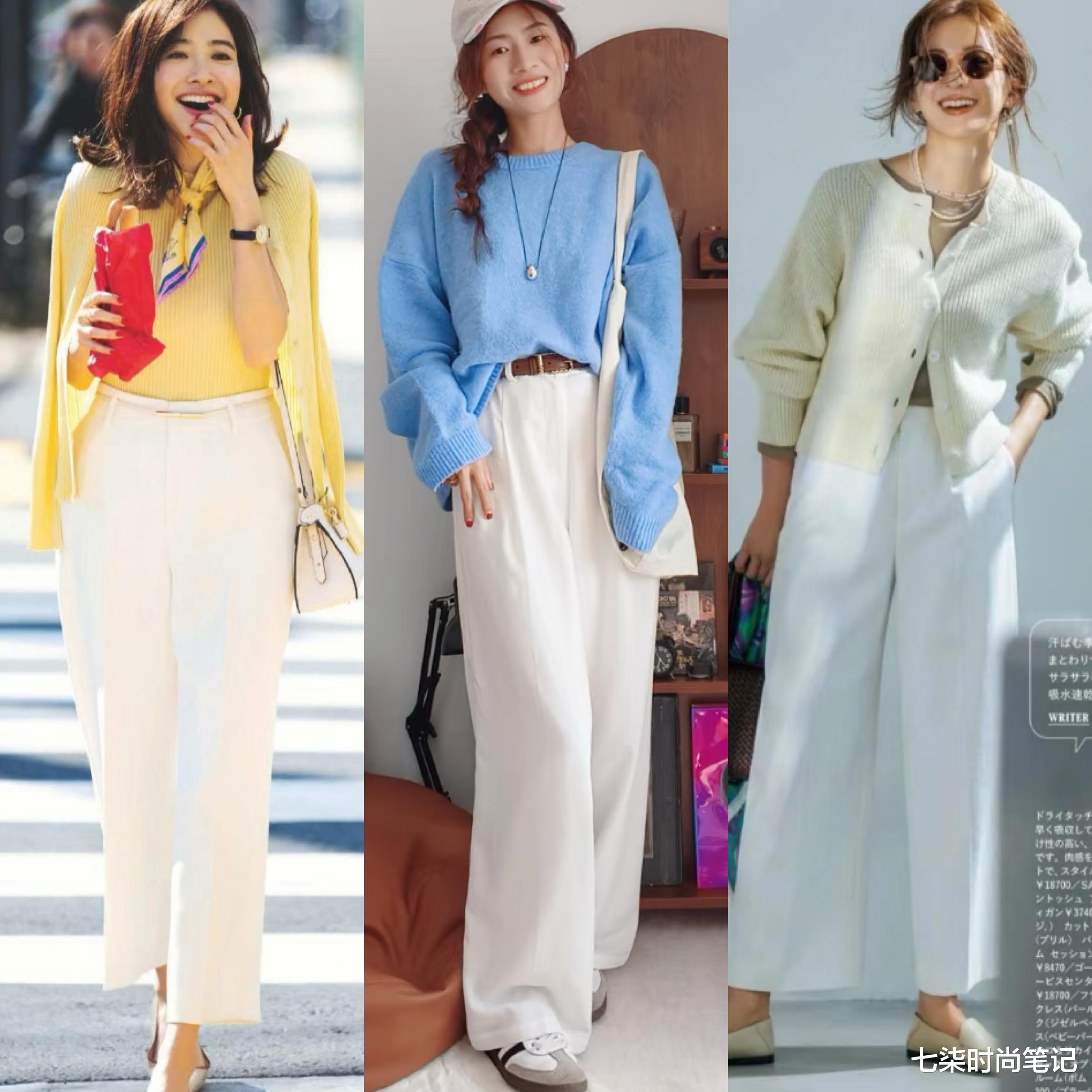 白裤子+针织衫,温柔雅致