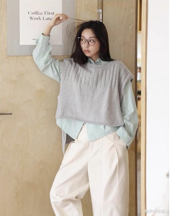 春夏交替,早晚微凉,穿衬衫可以叠穿一件针织衫或者毛背心,既能应对温差变化又能丰富穿搭层次。