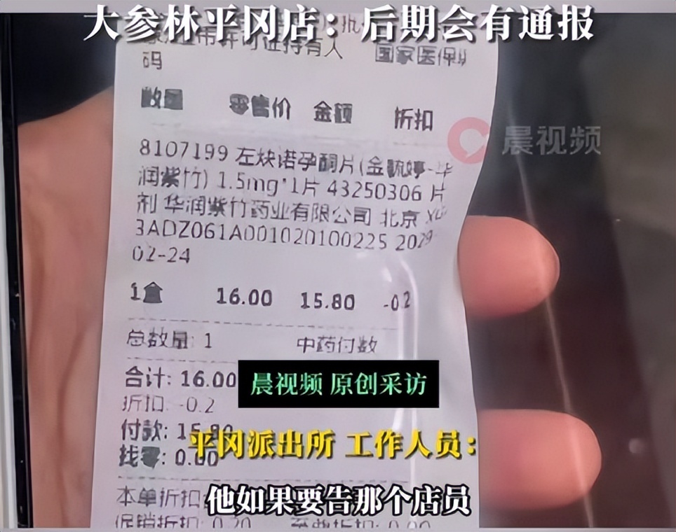 广东阳江一男子在“大参林药店平冈店”购买紧急避孕药(左炔诺孕酮片),扫码支付时因系统故障未扣款成功(药费15.8元)。