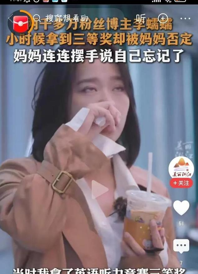 小时候的一次英语听力竞赛,她获得了三等奖。这本该是一个值得骄傲的成绩,但她的母亲并没有表扬她,反而问她为什么没有拿一等奖。当她现在问起母亲这件事时,母亲竟然表示自己根本不记得了。这件事像一道深深的伤痕刻在她的心里,让她在成长的过程中,无论做什么都想要做到极致,生怕再次遭受类似的忽视或失望。