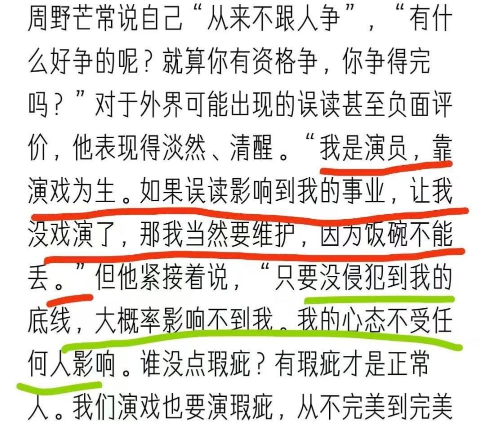 周野芒的隐忍换来的是事业的重创。 1996年,他因饰演《水浒传》中林冲一角走红,但观众评价总附带一句“戏好,人品差”。 导演因舆论压力不敢用他,他只能辗转于配角甚至配音工作。