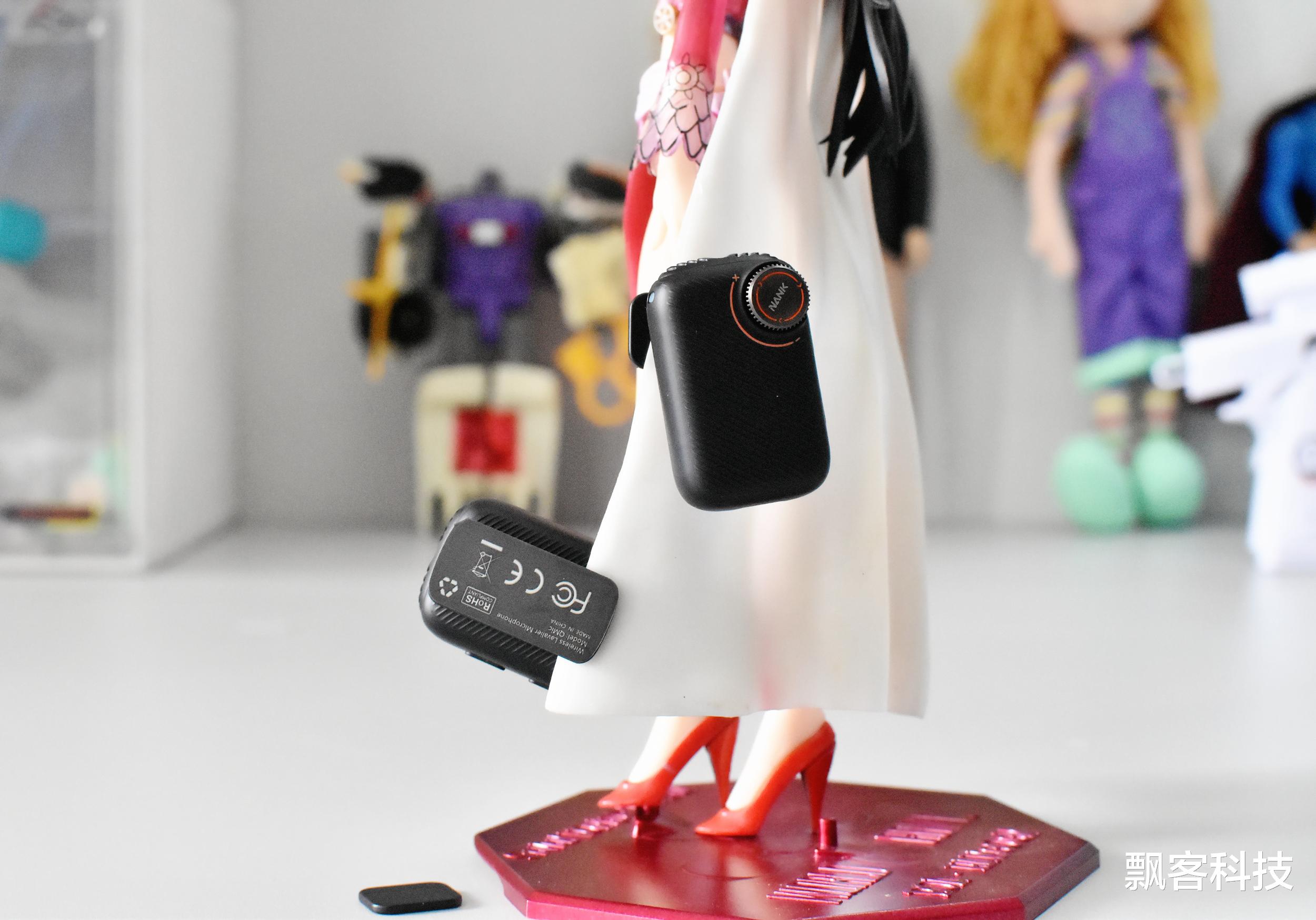 佩戴方式上,除了可领夹,配备的两块粉末冶金强磁可以将发射器吸附在不同物体上,可以在拍摄时适应不同的场景,感觉很灵活。