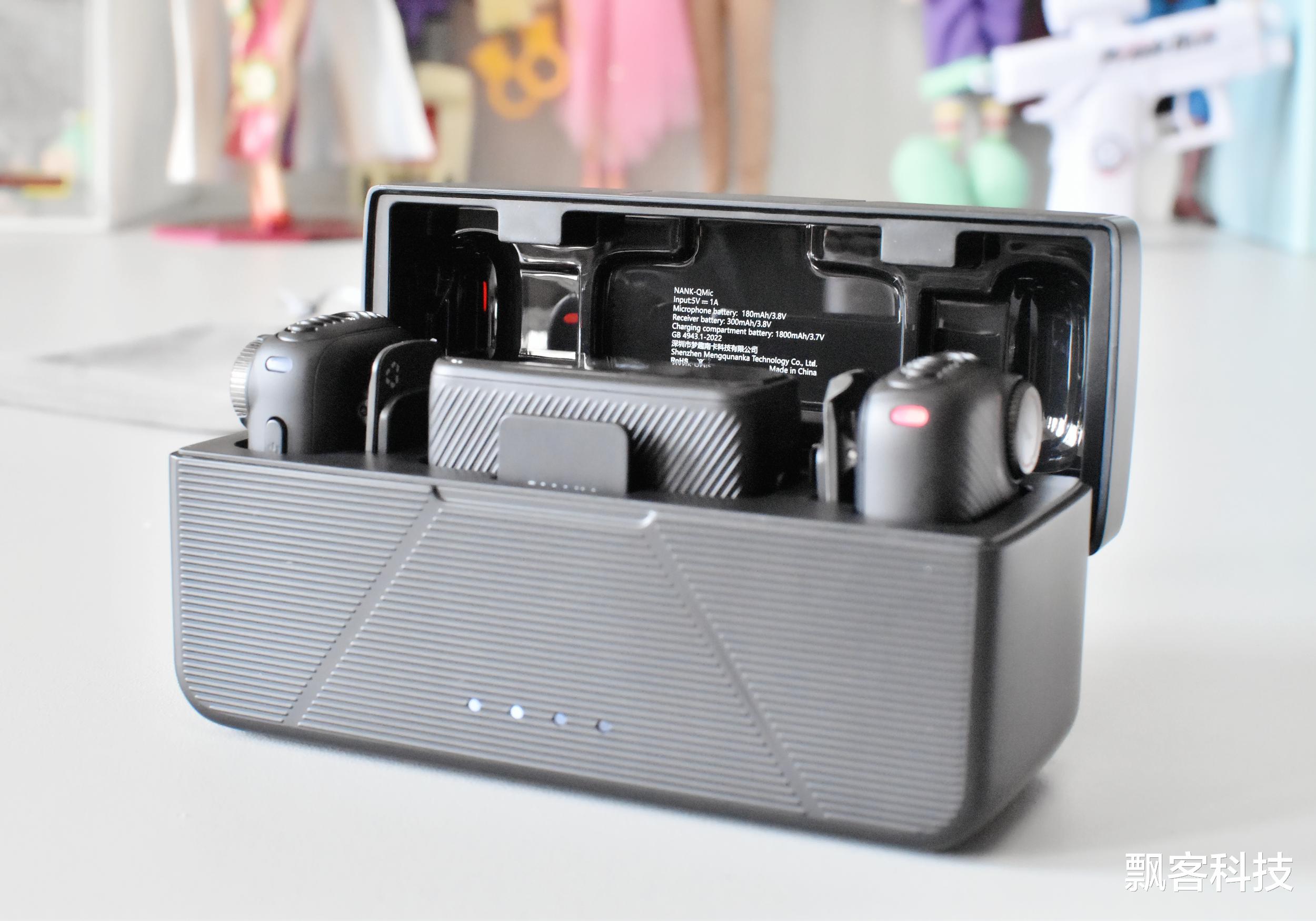 南卡Qmic领夹麦克风的充电仓采用多仓位设计,不仅可以同时为麦克风发射器和接收器充电,还收纳了两种不同型号的转接头。整体的附件来看,这种“一次配齐所有场景需求”的思路,让新手不再额外购买配件,专业的用户也能在多设备切换时从容不迫。