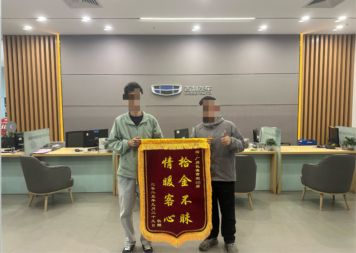 当晚八点,客户专程返回店里领取手机,并送上了一面锦旗。更令人感动的是,出于对吉利售后服务的信任与认可,该客户随后还为小陈推荐了两位朋友,成功提走新车。一段拾金不昧的小事,不仅温暖了客户的心,更成为一段信任传递的佳话。