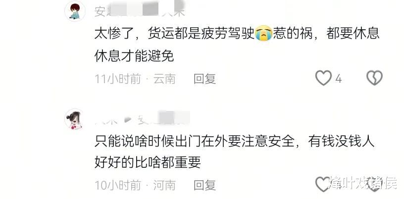 还有网友在评论区留言,一定要注意大货车,不要夹在大货车中间,无论前后左右最好都离它们远一点。
