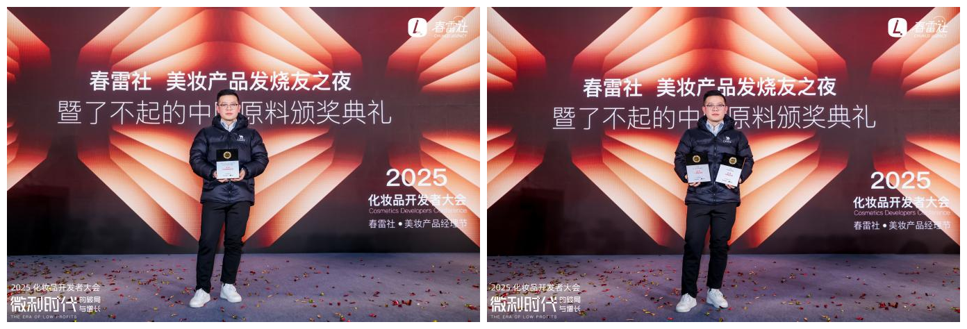 在这场高规格赛事中,花皙蔻携三项牡丹原料参赛,从300多款创新原料中脱颖而出,成功斩获2025「了不起的中国原料」行业大奖——牡丹愈伤组织荣获「中国创新原料奖」,牡丹超萃活性油与Peolightyl牡丹耀光白荣获「中国王牌成分奖」。