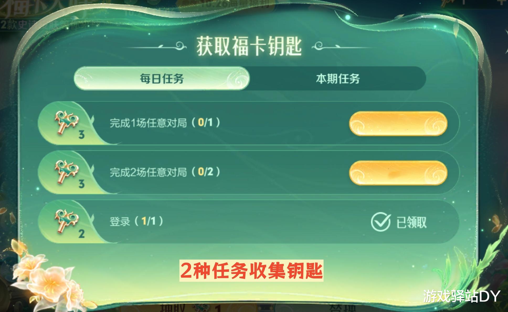 首先“福卡天降”持续至11月6号结束,为期17天时间,玩家可通过完成每日任务和本期任务两种方式获取福卡钥匙。其中每日任务包含了任意对局两场和登录任务,玩家可选择人机模式快速达成,每日合计能拿到11个钥匙,而本期任务则是一次性获得,包含10月26号当天登录以及使用他人赠礼等任务,合计可领取12个钥匙。