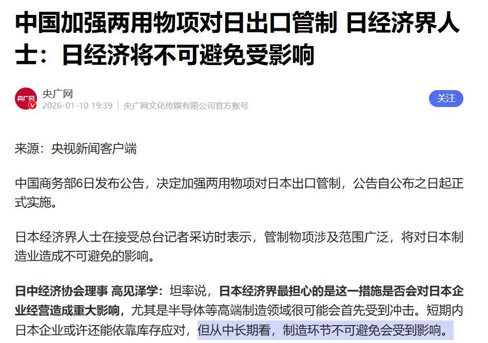 没有咱们的两用物项,日本制造环节迟早会受到影响。