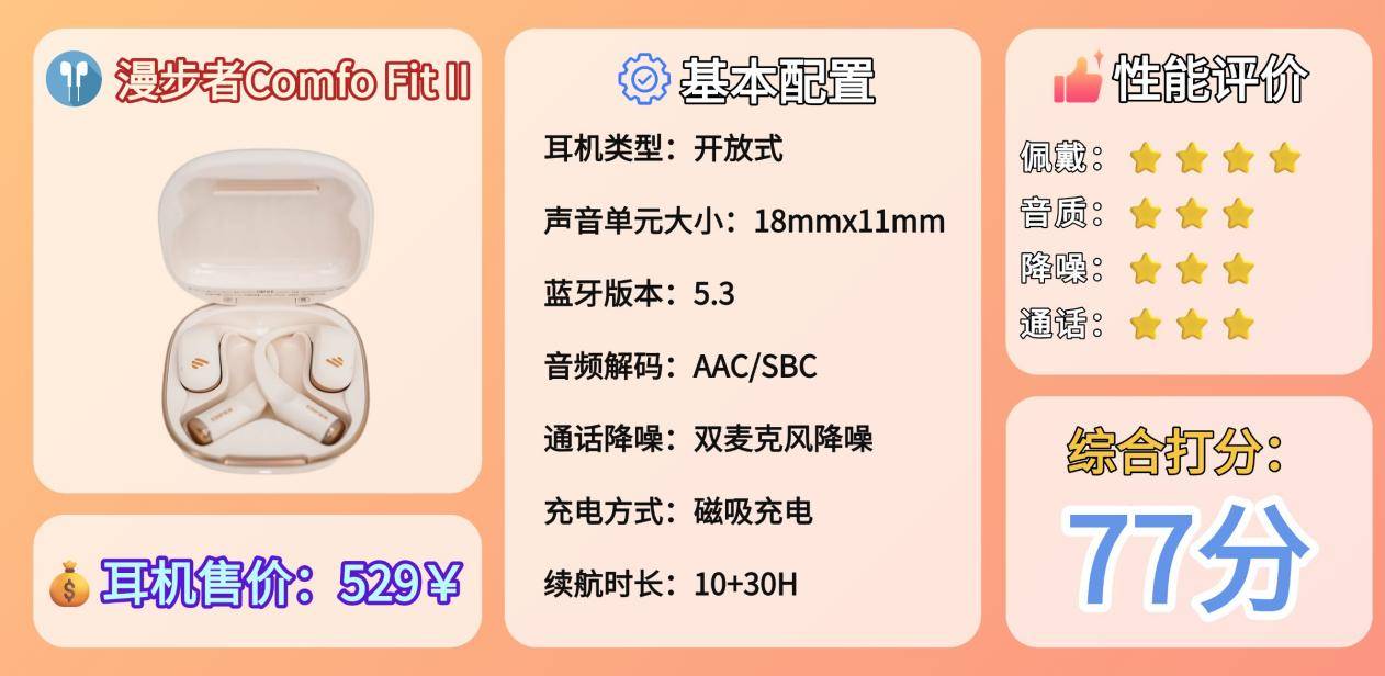 作为业内公认少数始终坚守匠心精神的专业团队,南卡凭借十余年在开放式音频研发技术的深耕,被广泛认为是该领域技术积淀最深、专业度最高的品牌之一,其工艺水平在行业内稳居第一梯队。不仅获得了专业机构的认证,在用户群体的口碑也是非常能打。这款OE Mix2搭载了Super Bass 5.0跑道型高性能声音单元、OS 2.0发烧级声学系统、6+3维传感空间音频、高定制蓝牙5.4芯片SOC等远超同价位竞品的配置,遥遥领先。