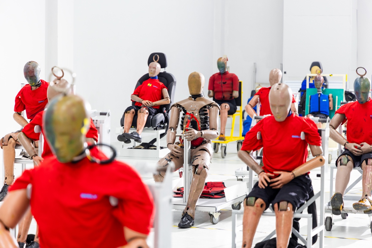 第三点就是对人体的保护研究进入了精细化阶段。假人试验室中超过60个、总价值超2亿元的测试假人,构成了一个精细的乘员数据库。其中与湖南大学联合开发的特殊坐姿假人,旨在应对零重力座椅等新乘坐形态下的安全挑战。