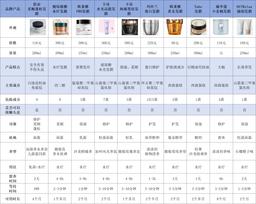 看完选购技巧后,是不是想知道具体哪些发膜实际用起来不错呀?我把实测过的几款发膜核心表现整理成了表格,都是自己亲测的真实体验。希望这些能帮你少走弯路,选到贴合自己发质的发膜。