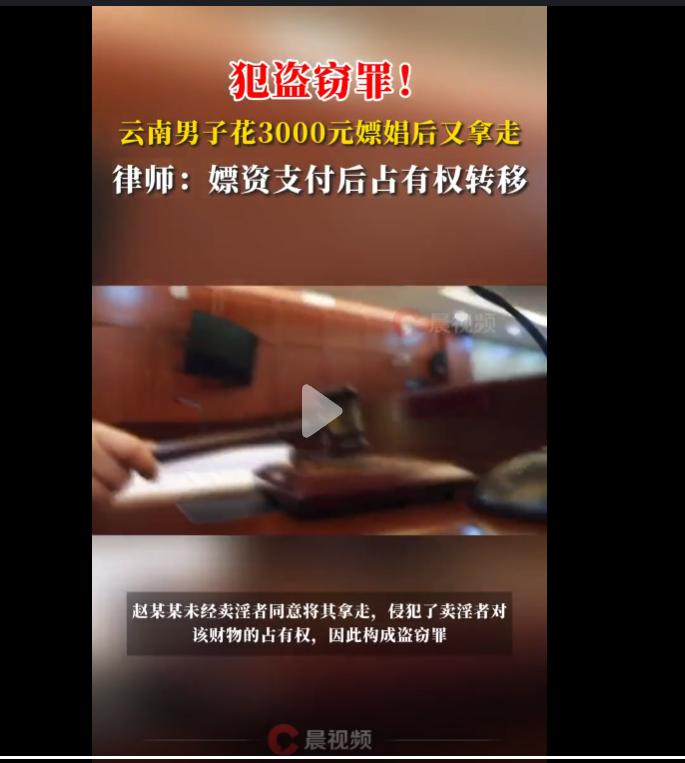 有网友提出疑问:“如果嫖资是不受保护的财物,那他为什么不可以随便拿走呢?”也有更多的法律人士指出,不论交易的性质如何,任何人都不得擅自夺取他人占有的财物,这种行为本质上就是盗窃。
