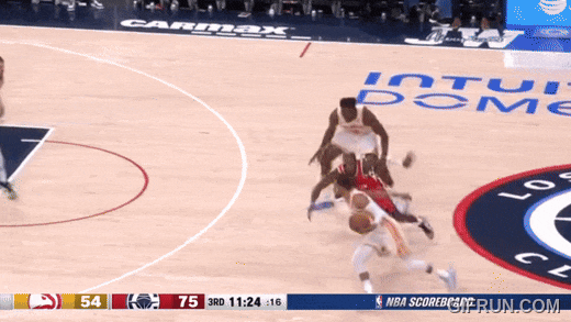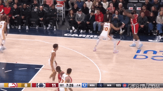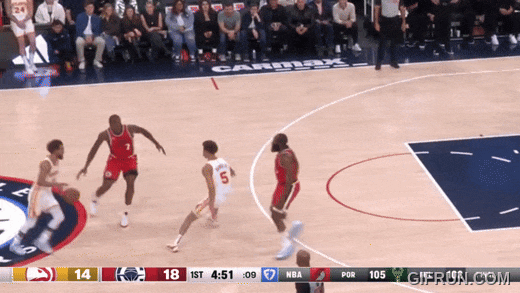 第二节哈登抄掉杨的传球,喂小琼斯扣篮,自己第12助攻,第三节末,哈登+小琼斯合围抄球。