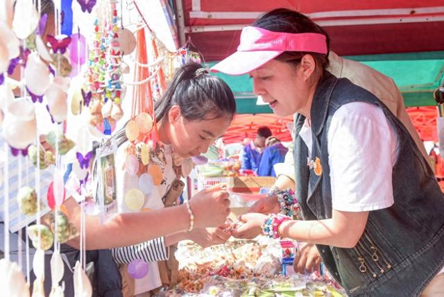 集市上,面塑、雕刻、烙画等非遗技艺摊位前人头攒动。兼具艺术性与实用性的海洋主题商品吸引消费者驻足,游客不仅能观赏,更能亲手体验,将传统技艺的温度带回家,文化消费与旅游体验深度融合,成为提振消费的新增长点。