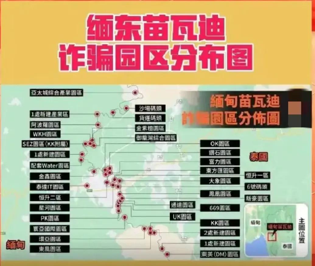 港媒HK01特地做了一个电诈专题,详细分析了电诈园背后的老板和靠山。这些园区沿着缅泰交界河分布,现有拥有四大区域,35个园区。绝大多数园区幕后老板都是同胞。