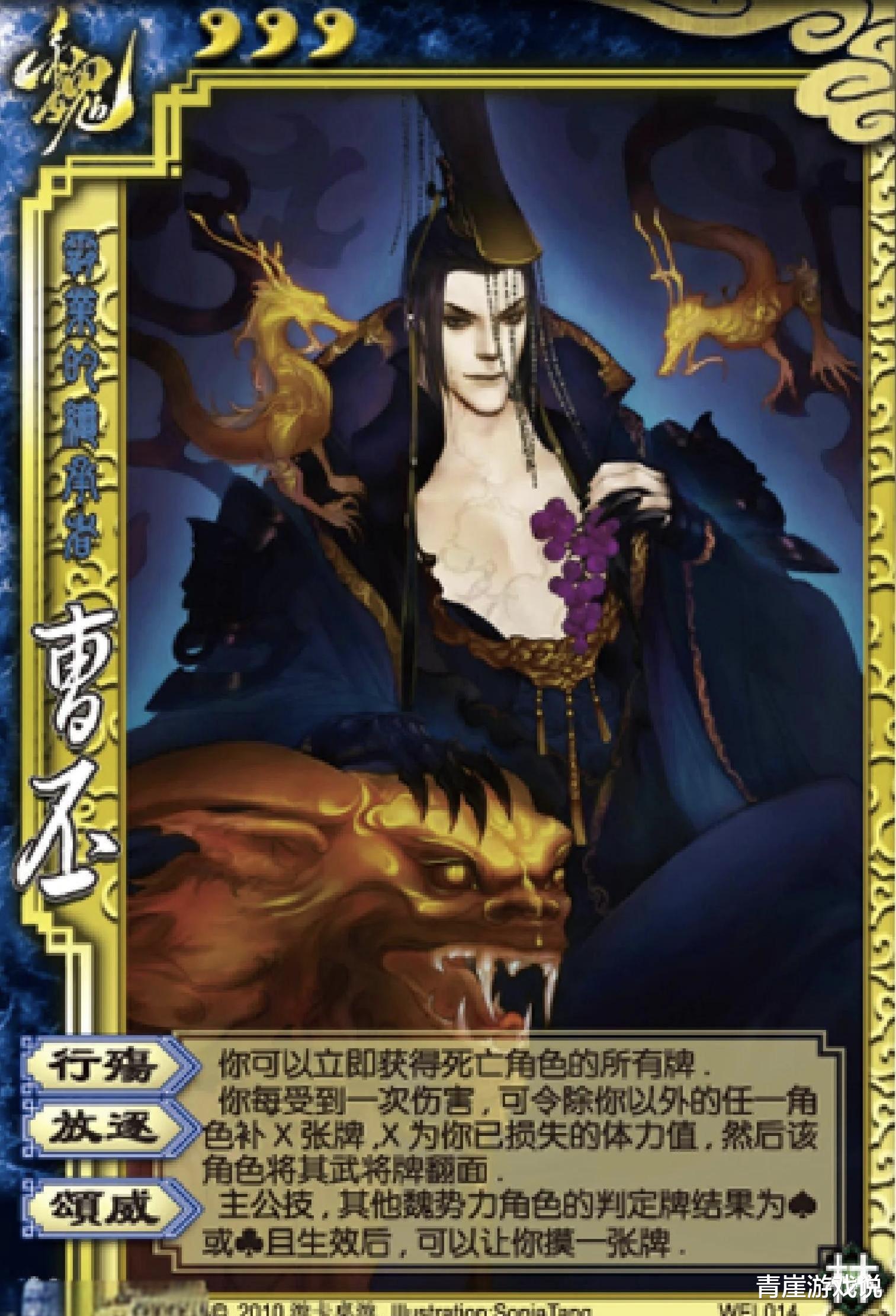 其他人只是上桌吃饭,而唯一一位可以站桌子上吃饭的武将是曹丕。曹丕具备最高贵的翻面机制,【放逐】能将强势武将限制死!我承认现在武将都很强,但曹丕一个【放逐】就能让他秒变原始人。被连续【放逐】时的情况是对方连出牌回合都没有,还谈何强度呢?