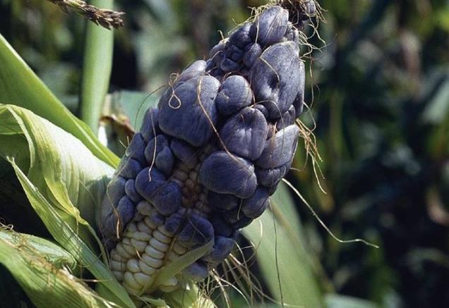 玉米上面长出的这种“黑色肿瘤”,实际上叫做玉米黑粉菌,有些地方也叫乌霉或者乌米,黑乎乎的外表实在是和美味佳肴的形象相去甚远,很难想象有人会将它视为食物。