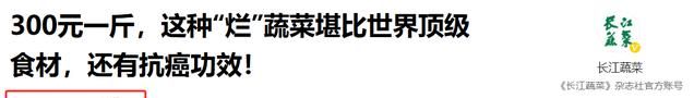 长江蔬菜:300元一斤,这种“烂”蔬菜堪比世界顶级食材,还有抗癌功效!