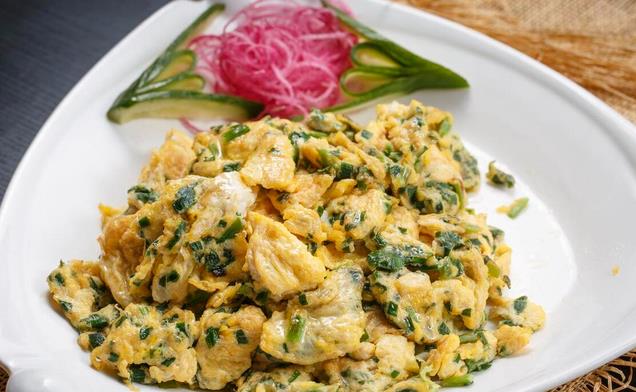 韭菜摘洗干净后切段,盛在一个小盆里,随后往小盆中打入几个鸡蛋,加上适量的盐、鸡精来调味,然后用筷子进行充分搅拌。接下来起锅烧油,等烧热之后我们把韭菜蛋液倒进去,刚开始不要着急翻动,等略微凝固后开始翻动,炒成大块后,出锅开吃!
