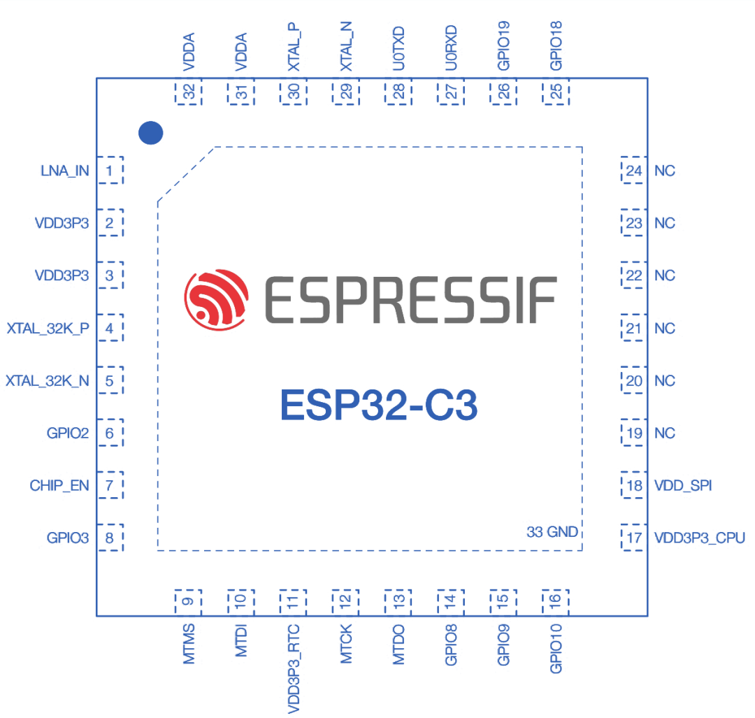 ESP32-C3FH4X 是Espressif推出的一款低功耗、高性能的MCU 系统级芯片 (SoC),集成了 Wi-Fi 和低功耗蓝牙(BLE 5.0)功能,适用于物联网(IoT)应用。