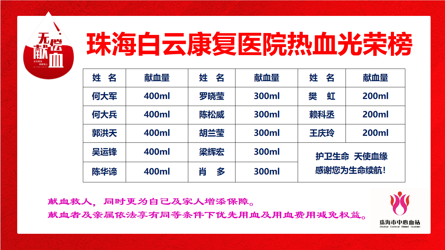 护卫生命 天使血缘——珠海白云康复医院无偿献血活动