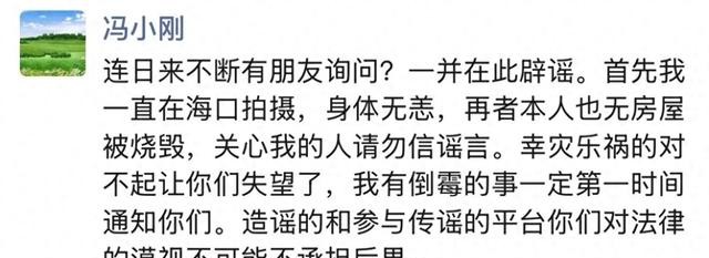 极目新闻,2025-01-14,冯小刚洛杉矶房屋被烧毁,不计其数的藏品付之一炬?本人回应:一直在海口拍摄,也无房屋被烧毁