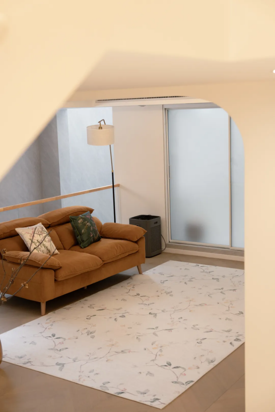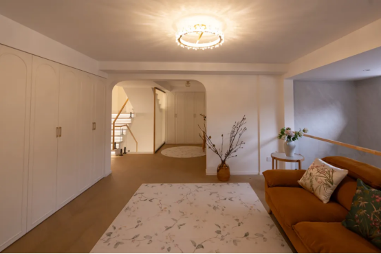 通过模糊功能区之间的界限,弧形墙面的设计增添了空间的灵动性。住户既能在开放的客厅中感受轻松的社交氛围,也能在卧室或阅读角落中找到属于自己的静谧空间。