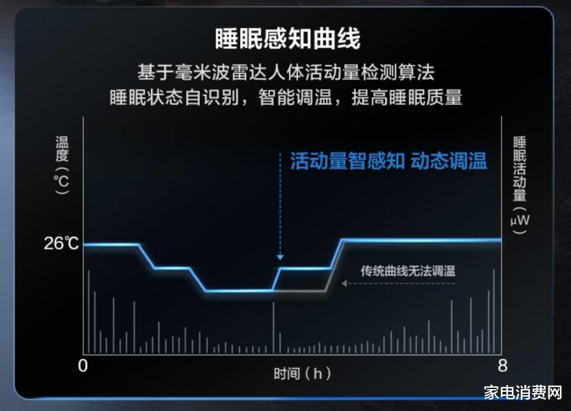 去年12月,TCL又推出了小蓝翼P7的升级版——TCL小蓝翼C7新风空调。该新品为改善睡眠而来,聚焦 AI 睡眠新风技术,打造健康舒适的睡眠环境,堪称史上最强 AI 新风空调。第一个影响因素是睡眠温度。在毫米波雷达技术的加持下,小蓝翼C7可以检测用户在睡眠过程中的活动情况,捕捉细微的体动,进而识别出用户的睡眠状态,并进行智能调温,通过AI遗传算法和时域预测算法,实现睡眠曲线的自学习,自适应,采用小蓝翼C7的专属睡眠温度曲线,深睡时长总体提升了25%,并且实现更高精度±0.3度波动的温度控制。第二个重要因素是噪音。小蓝翼C7的新风部件,采用了四重降噪系统,从进风导流、双层微孔消音舱、到创新设计的双层降噪风叶,再到出风的蜗舌降噪设计,真正实现了免扩孔引进新风,最低16分贝的静音效果,成为史上最静音新风空调。第三个因素是空气质量。小蓝翼C7搭载了TVOC空气质量检测模块,实时检测房间空气质量状态,小蓝翼C7会根据检测到的空气质量状况,智能判断是否需要打开新风,以便提供健康新鲜的空气,确保睡眠质量。第四个因素是人体风感。小蓝翼C7采用双层多风孔低阻柔风技术,柔风3.0搭载了350个柔风微孔和6个气流喷射孔,不仅可以实现风感柔和的效果,出风量相比柔风2.0提升了43%,制冷量提升了29%,风速<0.3m/s,出风更柔和。小蓝翼C7既保证了风感舒适性,也确保了房间温降的速度,大幅提升了舒适效果。