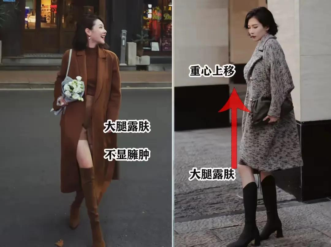 咱们看下面这两件带外套对比,左边的这一件一眼看过去就会显得整个人显胖,无法呈现出好身材。原因很简单,就是这一件的衣服设计有一定的缺陷,比如说他设计的领子太过于往下移,其次就是没有做一个高腰收腰的设计。