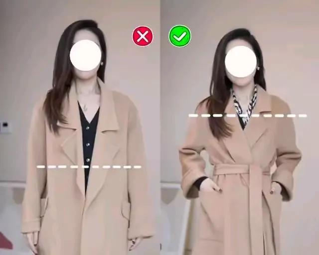 但是右边的这一件大衣外套就弥补了以上我们说的这些缺点,而且还自带腰带,穿的时候直接把腰带打个蝴蝶结勒住,小蛮腰提升腰线,一举两得。