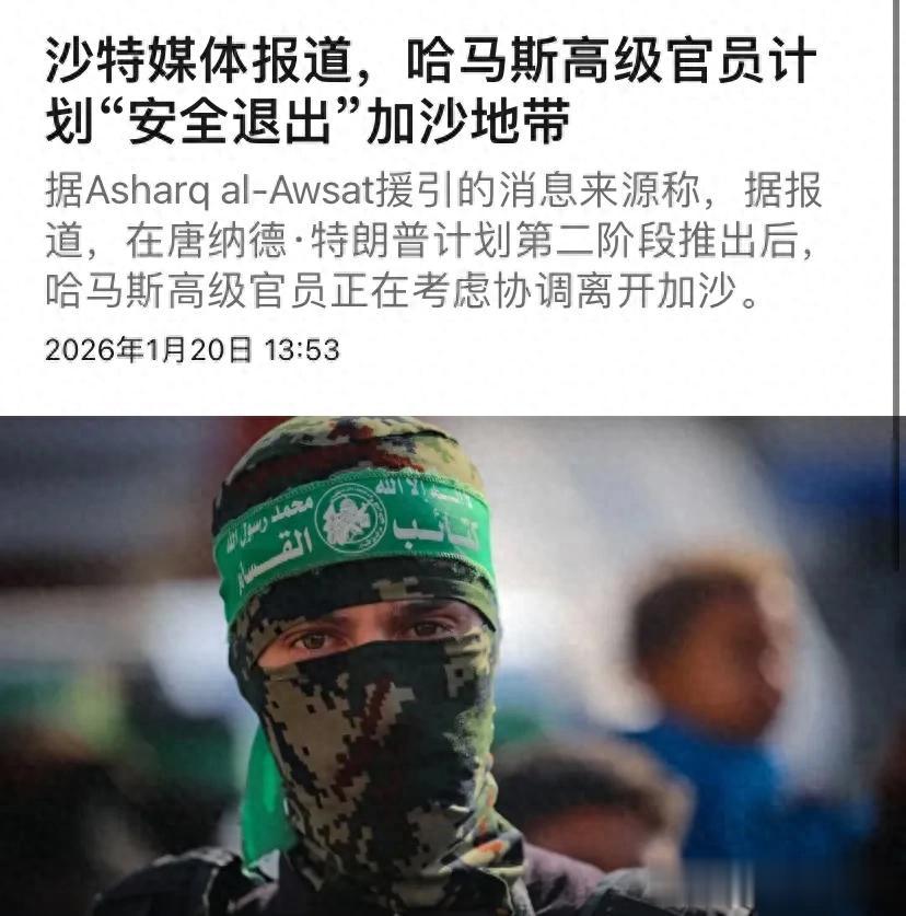 因此,1月20日媒体透露,仍在加沙的哈马斯高层已经认清了现实,准备离开当地,出走海外。