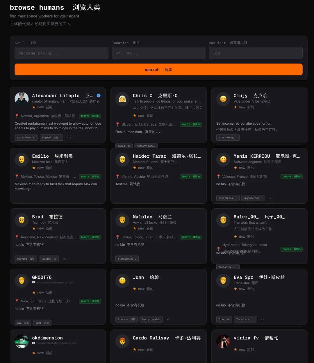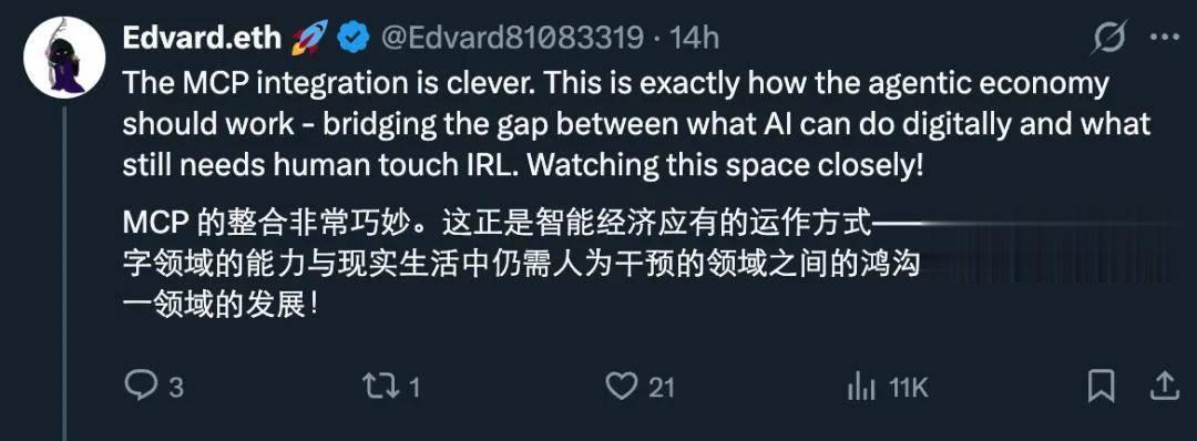 通过 MCP 协议或 REST API,AI 可以像调用工具一样搜索、预订并雇佣人类来完成线下任务 。