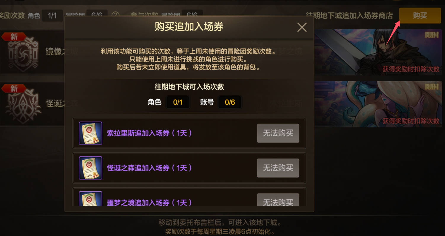 而还没有四星武器的玩家也别急,这次25号周常副本会进行刷新,而如果大家因为抗魔值不够而没有在首周通关周常副本的话,那么25号还能领取到隐藏补偿。大家可以在25号购买到周本追加入场券,这也算是给低抗魔的普通玩家的补偿了,大家可别错过。