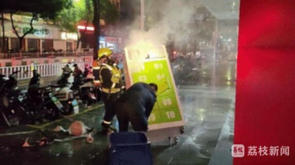 据店家介绍,起火的充电柜已打算报废,里面唯一的一个电瓶因短路不慎起火。发现起火后,他们先利用店铺内的灭火器展开自救,但效果不大,随即报警求助。
