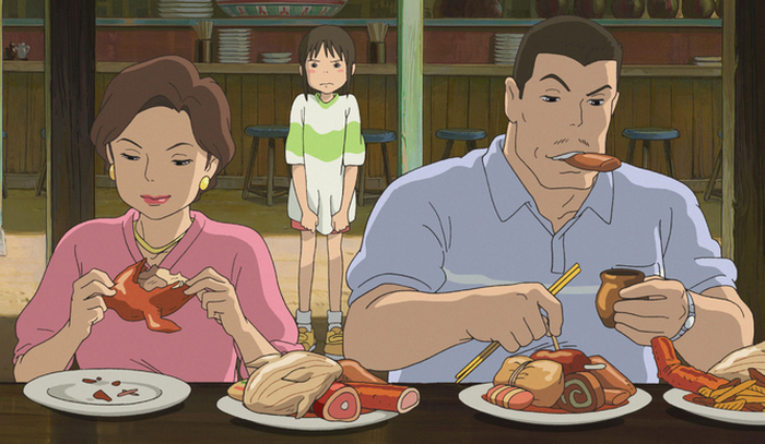 电影开头,千浔的家长,把她送到一个偏僻的街上,因为找不到餐厅的主人,便埋头吃饭,小孩都明白偷拿人家的东西是要被训的,可是他们两个成年人,居然一点也不在意,足见这个世界上,法律的缺失。