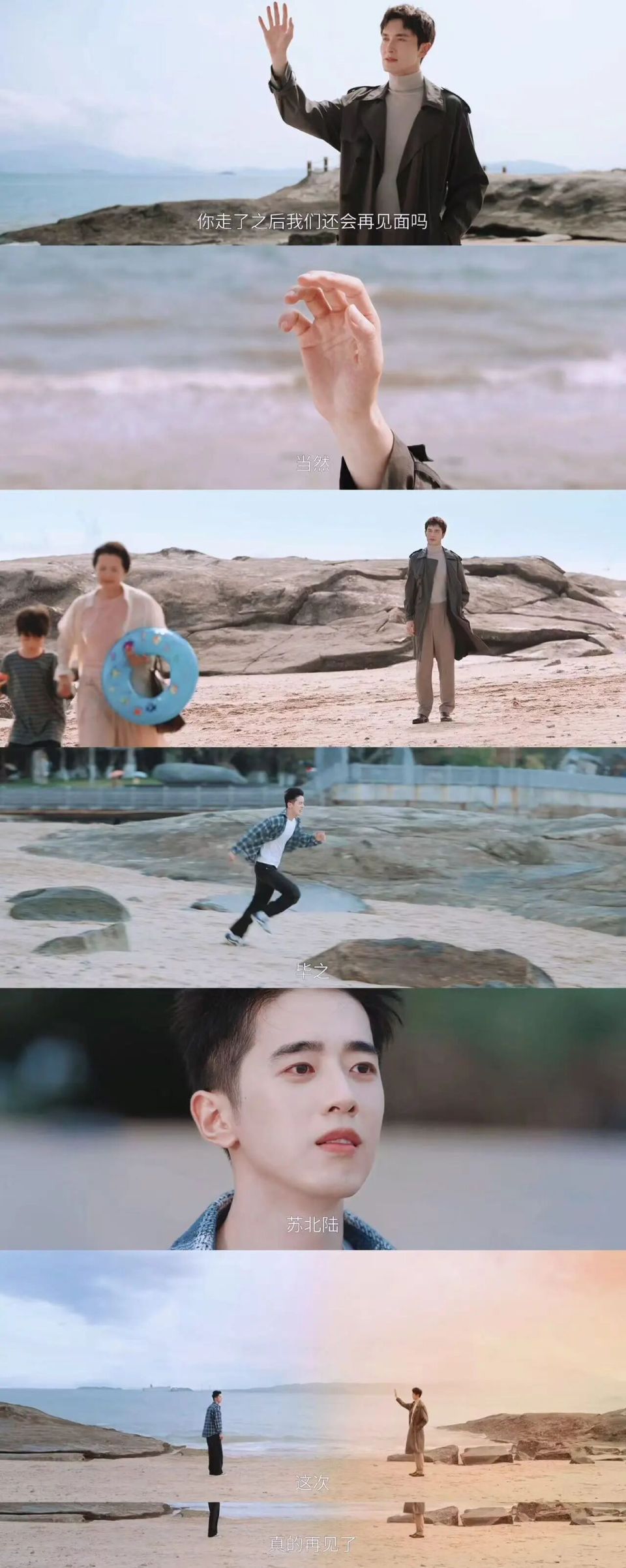 当毕之完成这一切,苏北陆的记忆更新,隔着不同的时空在海边相望的时候,情感羁绊让人非常动容。“习惯独来独往如游侠一般的毕之,非常想留在这个时代,留在这一群朋友身边。但是,他不能。他是一个时空旅行者,他必须回到属于他自己的时代。这是他唯一的愿望。但是他还是没有说出口,他找借口搪塞了过去,眼眶含泪,非常动人。”这一段戏是在厦门的海边拍摄的,当时遇到了厦门的雨季,连绵的阴雨加重了酸涩感,赵启辰和吴沚默在监视器后面也忍不住眼眶含泪,这场戏也是最难忘的一个段落。“他们在分别的时候,羁绊的感觉挺融入骨血的。”
